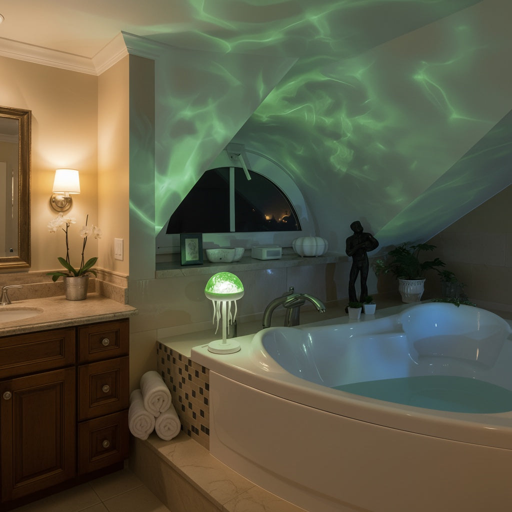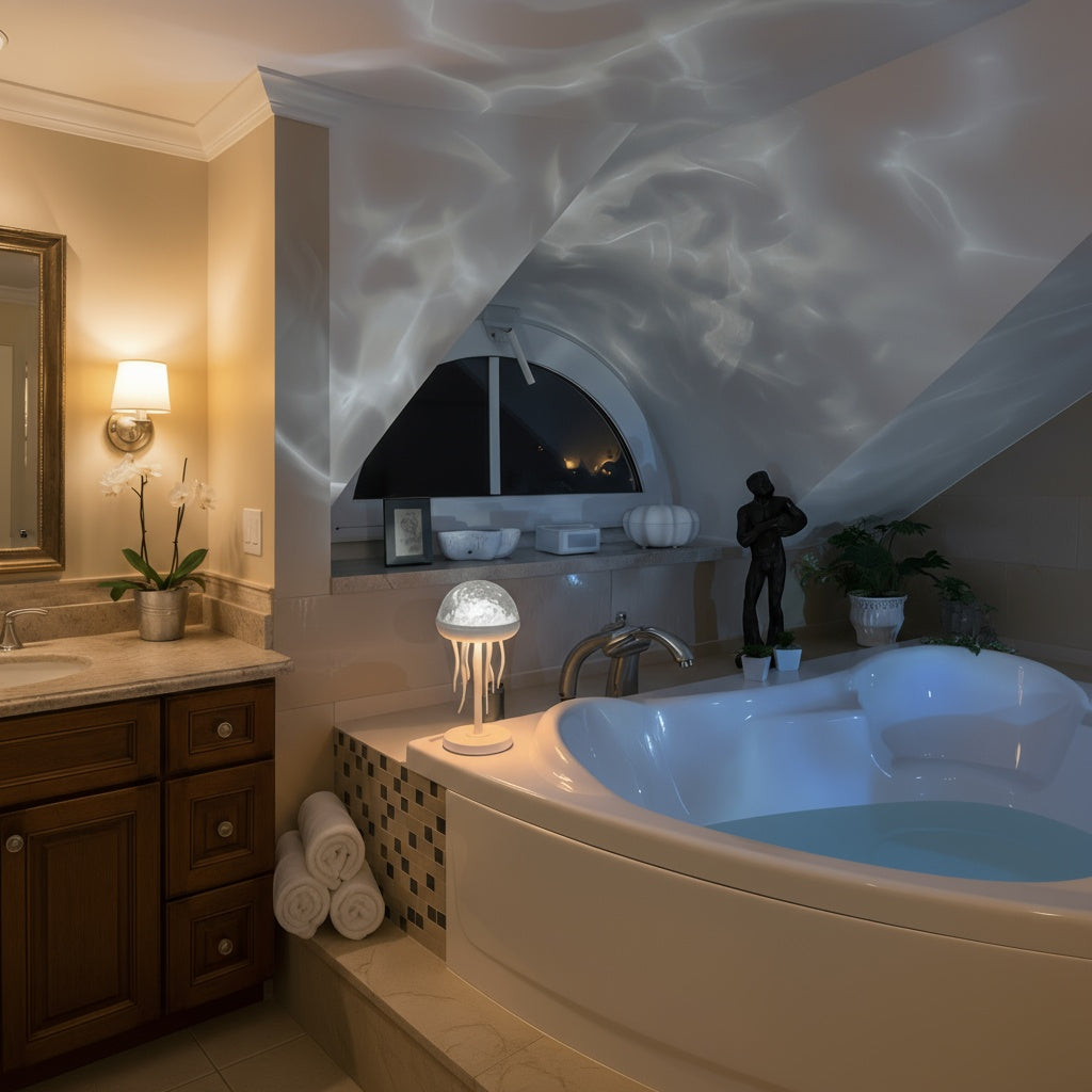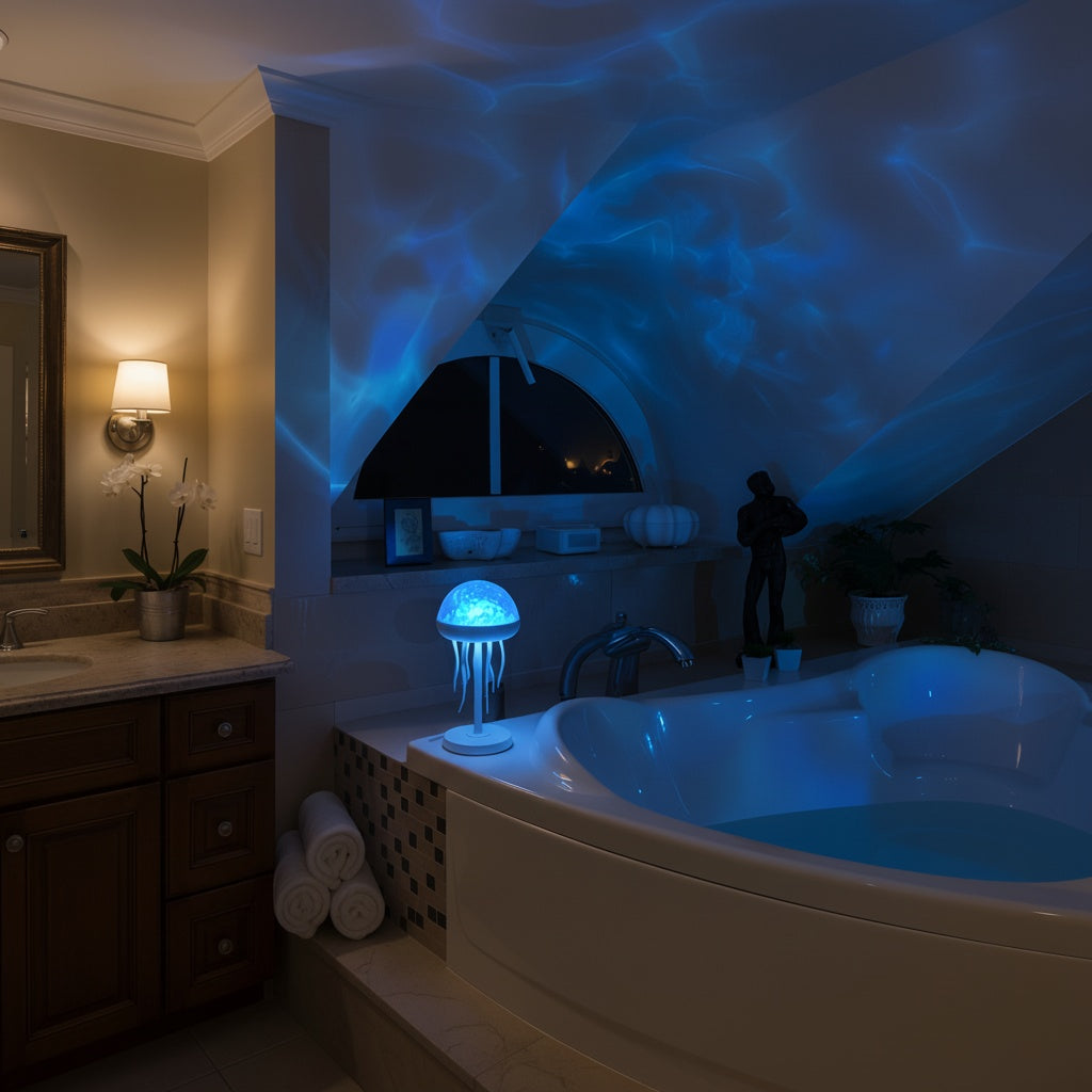 Let the Bluora Jelly Lamp bring the mystery and movement of the deep sea into your home.Β Shaped like a glowing jellyfish, this unique lamp projects mesmerizing ocean-wave patterns while its soft, flexible tentacles sway gently β creating the illusion of life beneath the surface.Β Perfect for your bedroom, bathroom, or relaxation space, it transforms light into a living, breathing experience of calm.